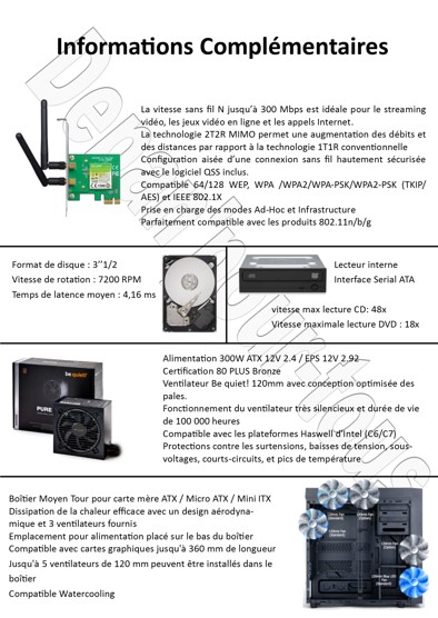 @ Propagandjow : le prix des pièces changeant régulièrement, et certaines pièces n'étant plus disponibles auprès des fournisseurs, il est peu probable que je remonte exactement le même PC, d'ou l'absence de prix. Je peux en effet afficher les prix, mais ce ne sera qu'à titre informatif. Les montages mis en valeurs ne sont d'ailleurs que des exemples. Je prend néanmoins compte de votre commentaire :)